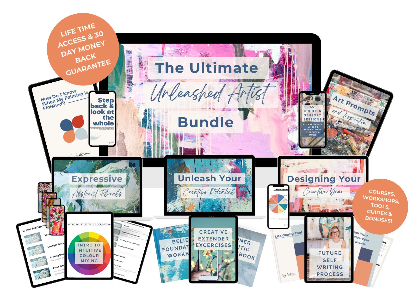 In total, the bundle includes over 90 video lessons across the courses, plus guided exercises, workbooks, painting demos, and studio tools.